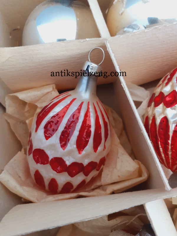 - Christbaumschmuck - 12er SET - in der DDR hergestellt, incl. Karton, ohne Deckel - gebauchter Zustand, siehe Bilder - dünnes Glas - unterschiedliche Größen: von 6 cm - 7,5 cm - Rarität !