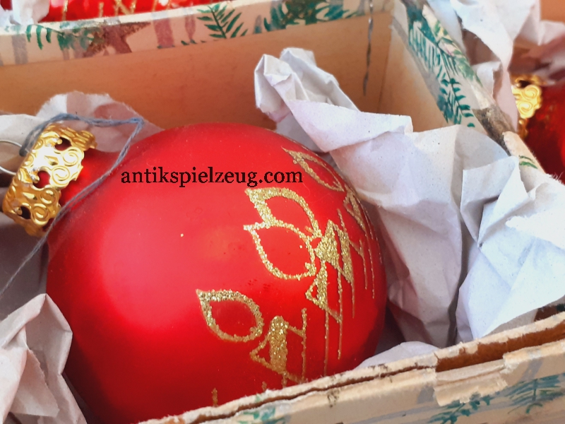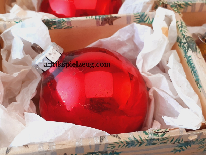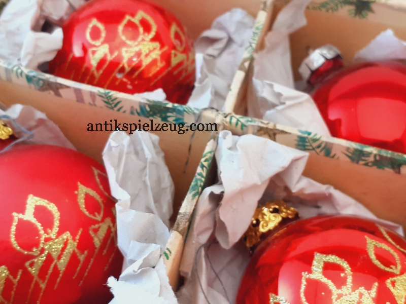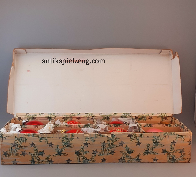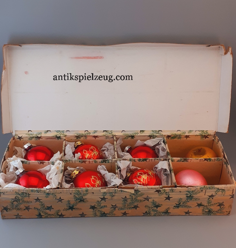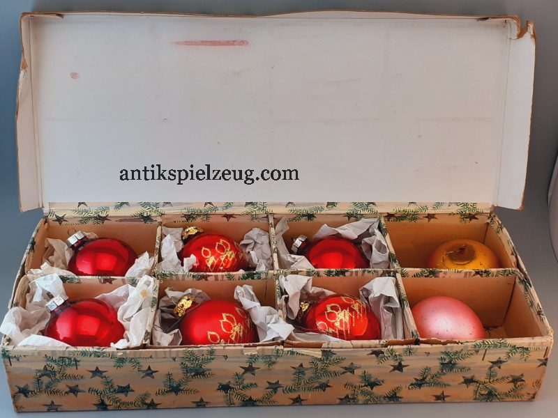 - Christbaumschmuck Kugeln in OVP - teilweise vor 1945, teilw. DDR - 2x Glaskugel und OVP vor ´45 - 6 x Glaskugel rot aus der ehem. DDR - stabiler harter Pappkarton | Box, Schachtel - gebauchter Zustand, siehe Bilder - Rarität !