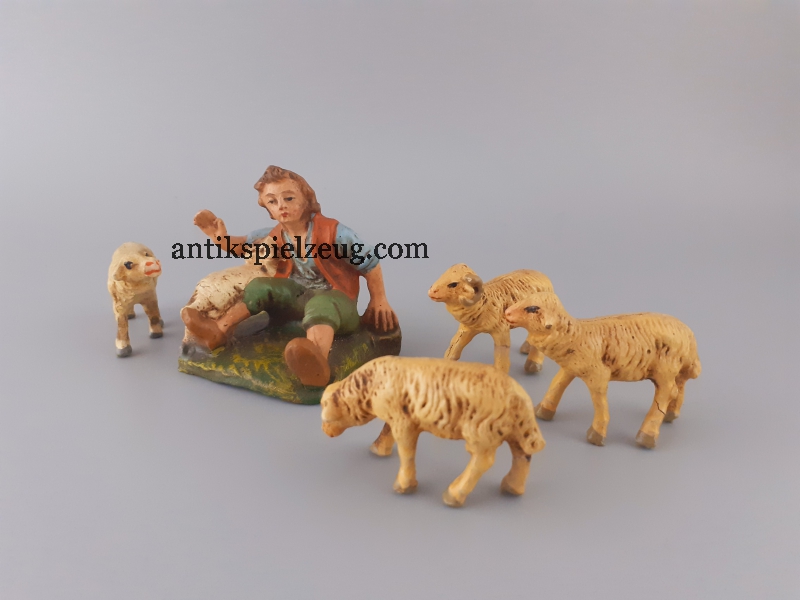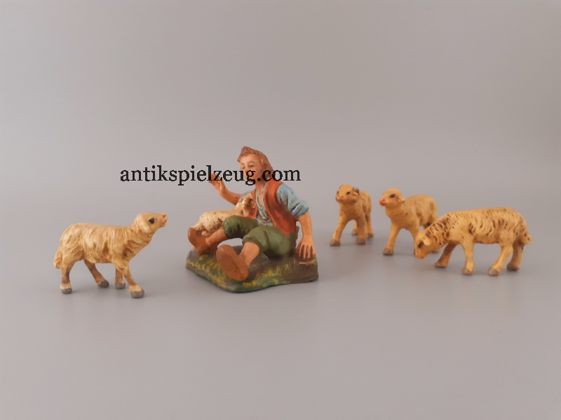 Bei dem hier angebotenen Spielzeug handelt es sich um:- Marolin Figuren | Hirte sitzend mit Schaf zzgl. 4 weitere Schafe im Angebotspaket- Gesamtgröße der Figur: ca. 5,2 cm, passend zu 10 - 11 cm Figuren