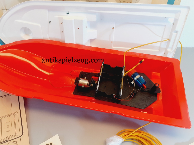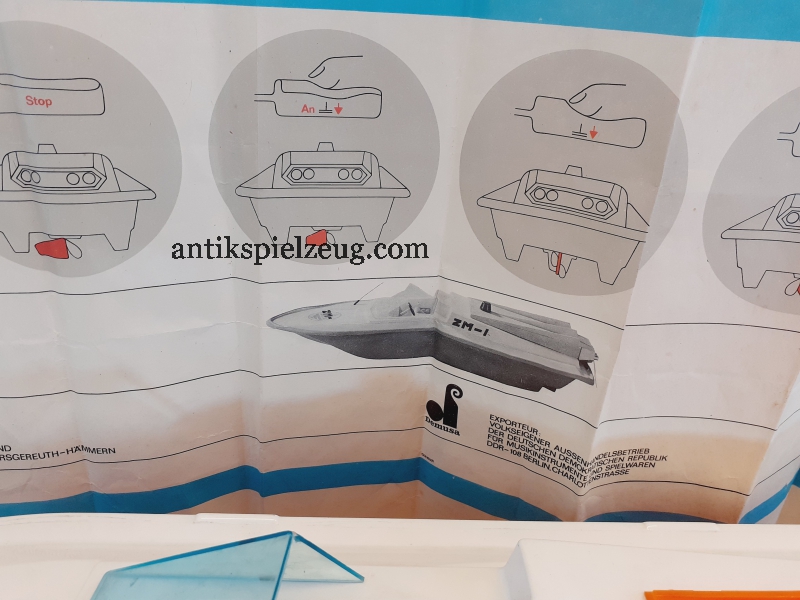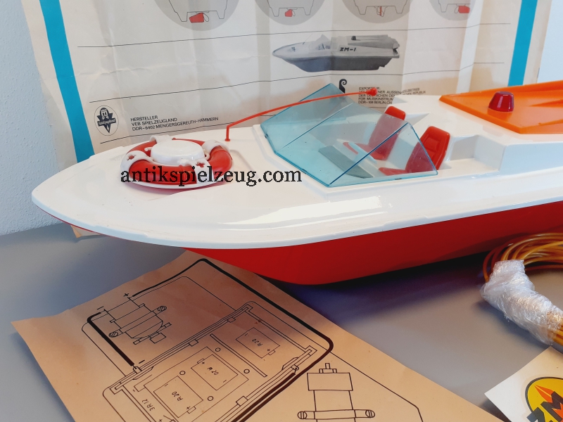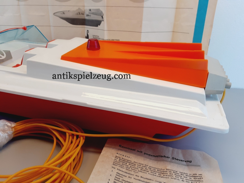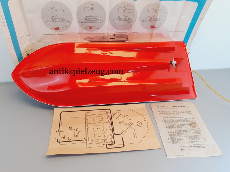 DDR Rennboot mit pneumatischer Steuerung VEB Spielzeugland Mengersgereuth-Hämmern Spielwaren Sonneberg DDR